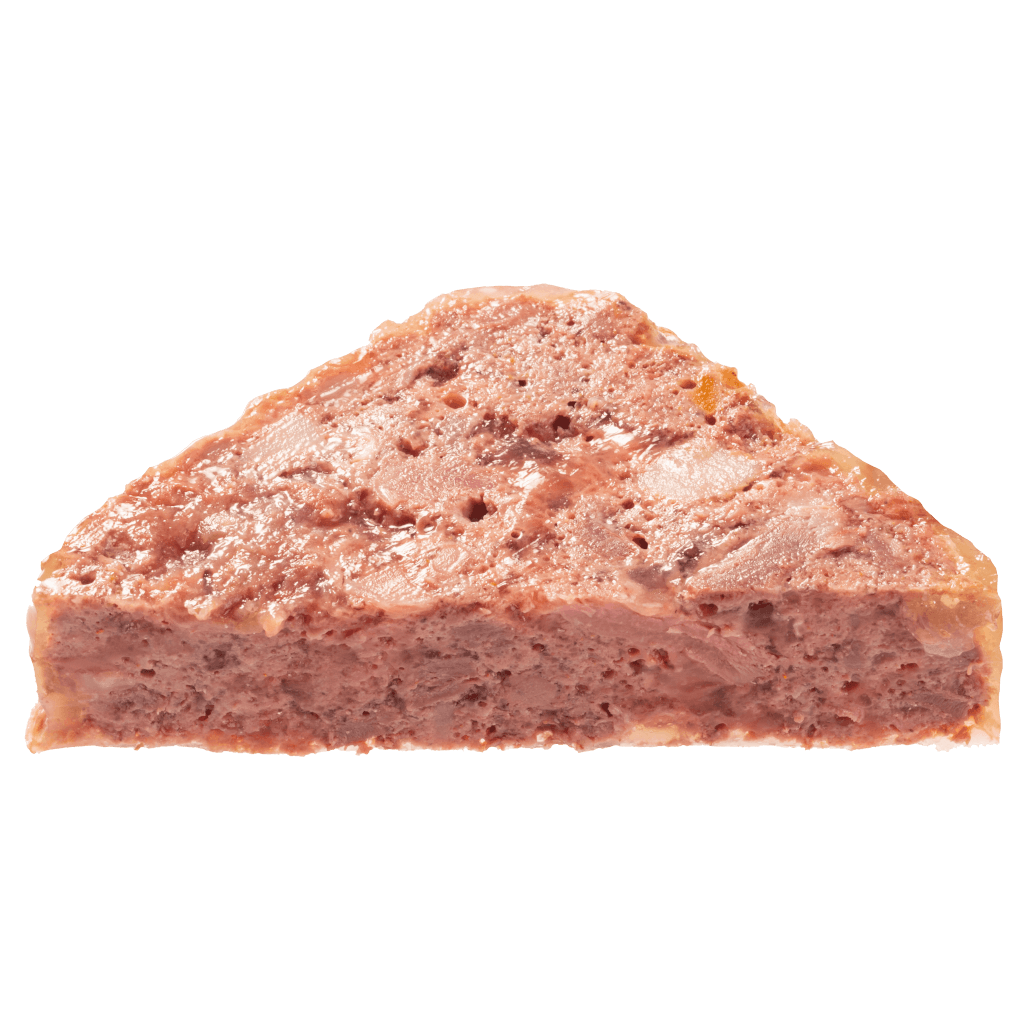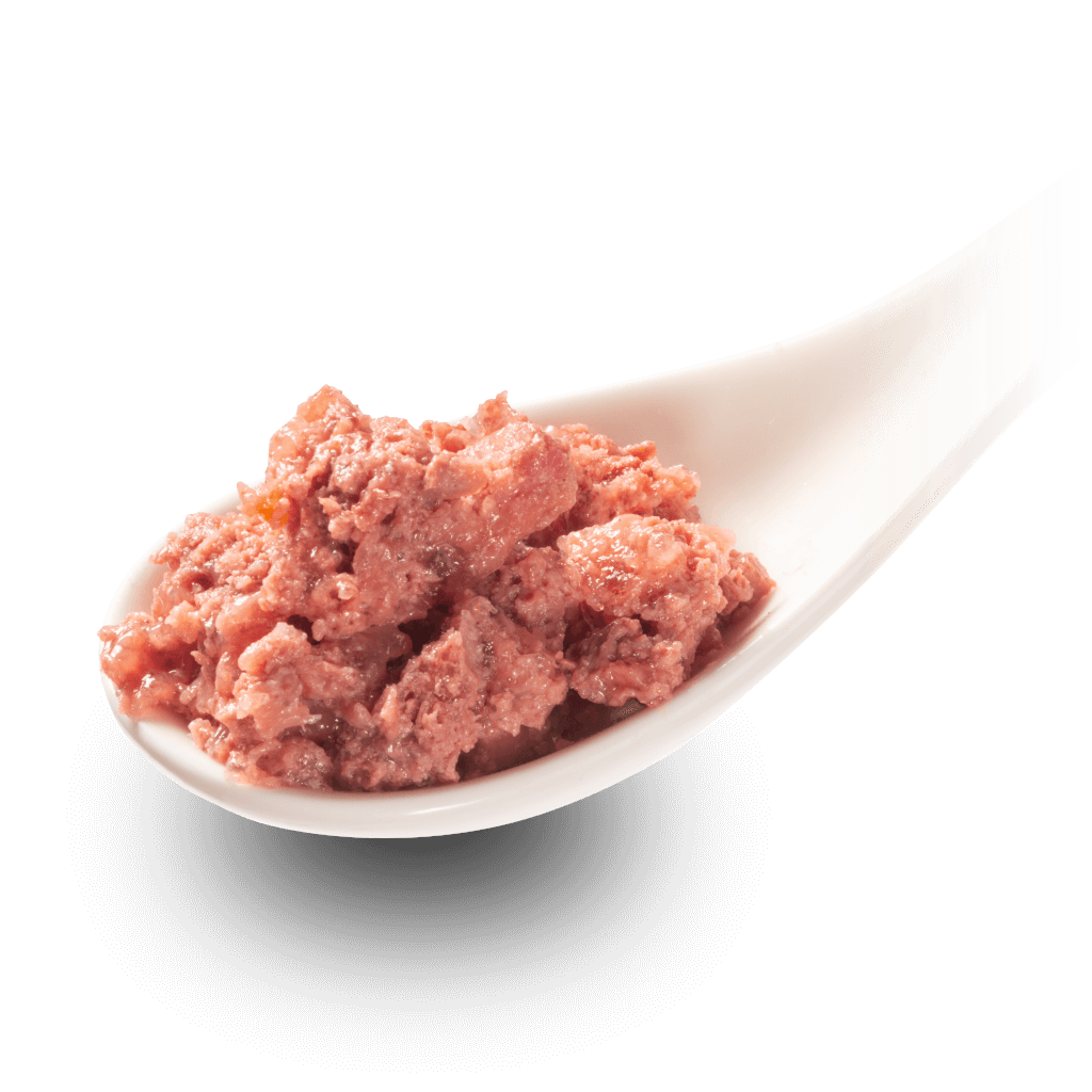 turkey meat and coney meat 65% (turkey 50% consisting of muscle meat, heart, liver and coney 15% consisting of muscle meat, heart, liver), turkey and coney broth 26,4%, potato 2%, parsnips 2%, carrots 2%, pomegranate seeds 1% (dried and finely ground), mineral nutrients 1%, salmon oil 0,5%, green-lipped mussel 0,1% (finely ground, naturally rich in glucosamin and chondroitin)