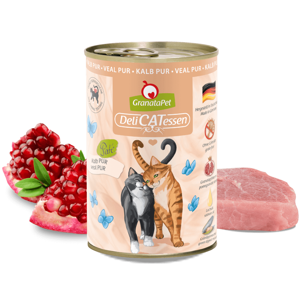 GranataPet DeliCATessen Multipack 2 PUR offers your velvet paw a purr-fect variety between our 3 delicious types of single animal protein. With its carefully balanced composition, each menu provides the ideal, well-balanced complete feed, which is gently steam-cooked only once to preserve all the important nutrients. The selective addition of essential oils, pomegranate seeds and green-lipped mussel deliberately refines each individual variety to support the immune system and joints.