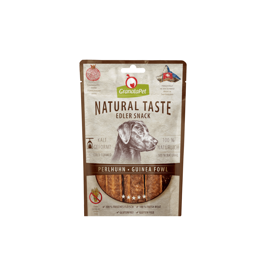 At GranataPet, we attach great importance to species-appropriate, healthy nutrition not only in our complete food, but also in the snacks for in-between. That's why our Natural Taste Edler Snack Guinea Fowl offers your four-legged friend a protein-rich and 100% natural supplement with lots of tasty fresh meat. In addition, gentle cold production ensures that important nutrients and vitamins are retained to provide your pet with the best possible nutrition between meals.