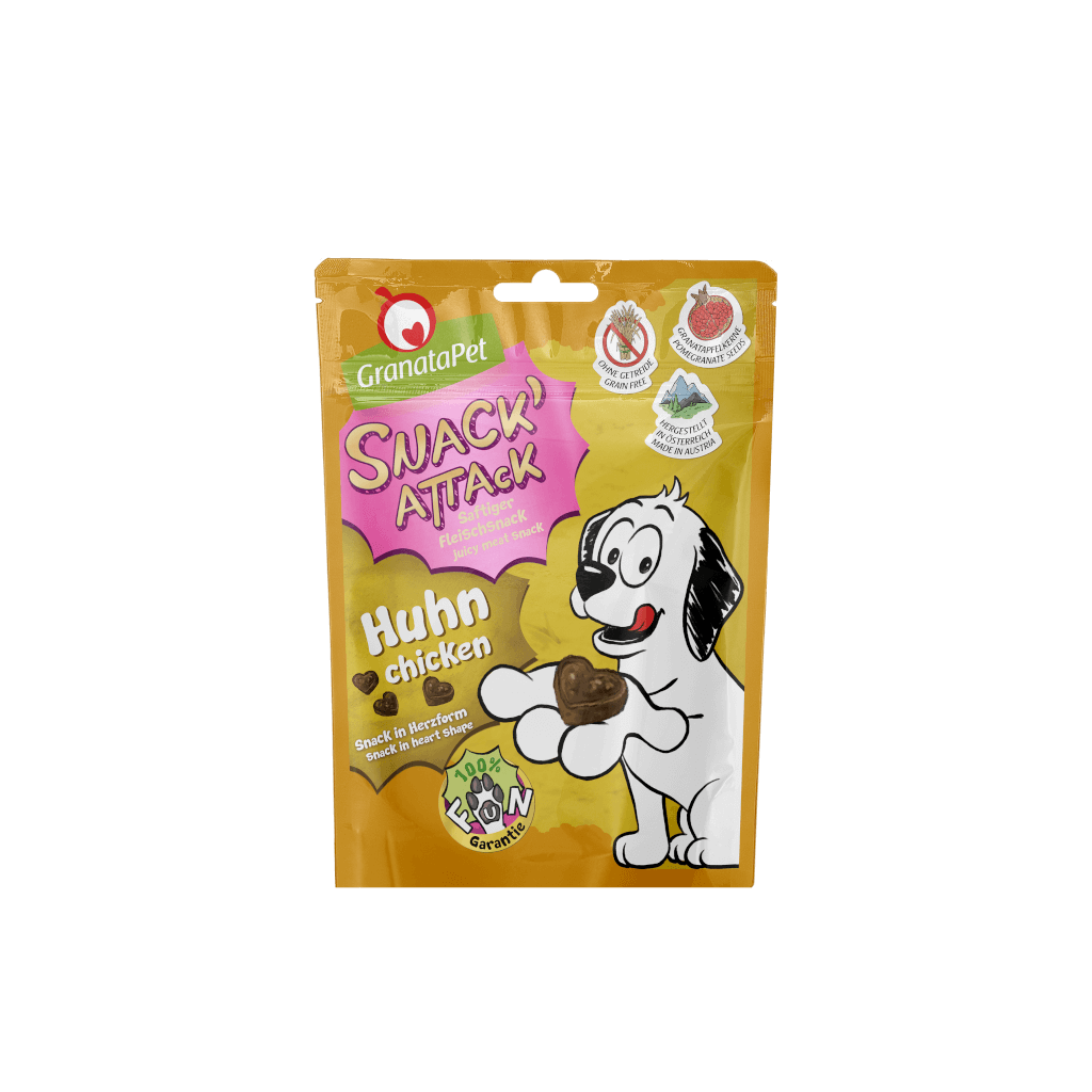 GranataPet Snack' Attack is a special treat for in-between. These snacks are a healthy and tasty reward for your dog. Once they've had a taste for it, they'll give it a 'shake’ again and again.