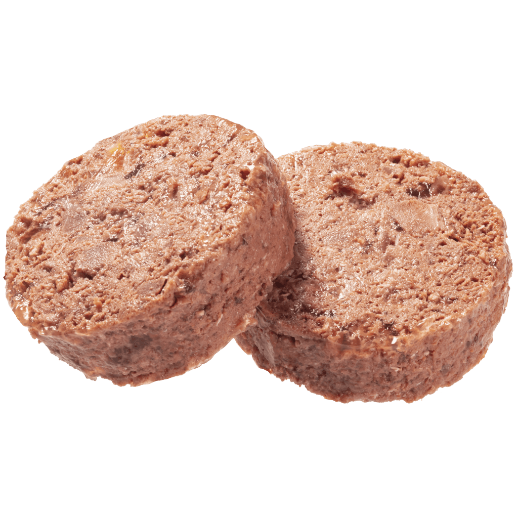 tuna and duck meat 72% (tuna 20% and duck 52% consisting of muscle meat, heart, gizzard), tuna and duck broth 24,9%, pomegranate seeds 1%, salmon oil 1%, mineral nutrients 1%, green-lipped mussel 0,1%