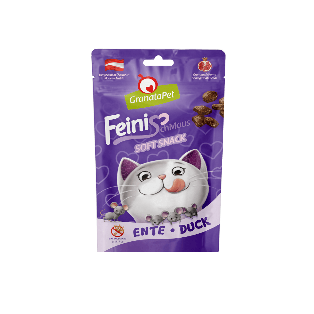 Wer seiner Samtpfote zwischen den Mahlzeiten einen kleinen Snack gönnen möchte, ist hier bei unserem FeiniSchmaus Ente genau richtig. Mit einer feinen Komposition aus viel Fleisch und vor allem ganz ohne Getreide, Zucker oder jegliche künstlichen Zusätze stellen sie ein gesundes Ergänzungsfuttermittel dar, mit dem Du deinen Liebling guten Gewissens verwöhnen kannst. Der schmackhafte Snack ist zudem durch seine softe Konsistenz gut zu kauen und leicht verdaulich.