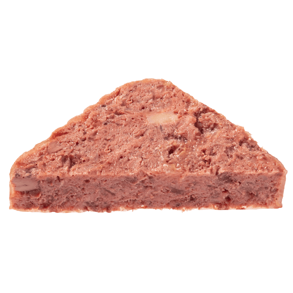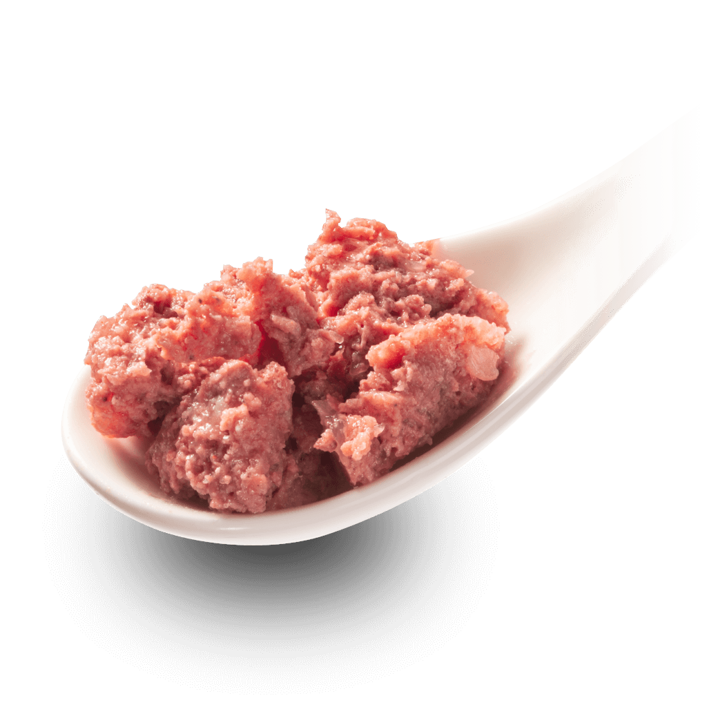 Lachs und Putenfleisch 65% (Lachs 20% und Pute 45% bestehend aus Muskelfleisch, Herz, Leber, Lunge, Magen), Lachs- und Putenbrühe 27,3%, Kartoffel 4%, Hagebutte 1%, Granatapfelkerne 1% (getrocknet und fein vermahlen), Mineralstoffe 1%, Nachtkerzenöl 0,5%, Petersilie 0,1%, Grünlippmuschel 0,1% (fein vermahlen, von Natur aus reich an Glucosamin und Chondroitin)