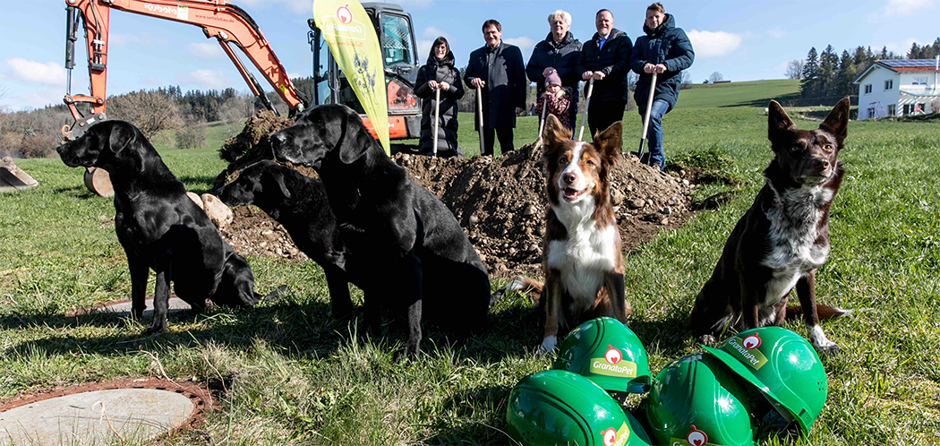 Mit einem symbolischen ersten Spatenstich gaben Bürgermeister Werner Endres, der Architekt Simon Habel (FG Architekten und Sachverständigen GmbH), Bauunternehmer Hansjörg Settele (Settele Bau) und der GranataPet-Gründer Markus Fuchsenthaler den Startschuss für die Erdarbeiten zum Bau des GranataPet Campus in Probstried (Markt Dietmannsried). „Mit diesem Projekt legen wir den Grundstein für unsere Wachstumsstrategie“, betont Markus Fuchsenthaler. Der GranataPet Campus wird mit seinen modern und nachhaltig eingerichteten Büroräumen die neue Heimat für die Mitarbeiter der GranataPet Gruppe. „Wir freuen uns außerordentlich ein so erfolgreiches Unternehmen in unserer Gemeinde begrüßen zu dürfen“, so Bürgermeister Werner Endres.