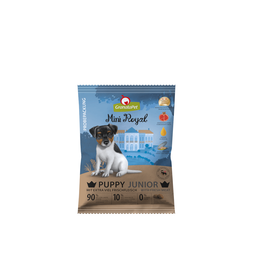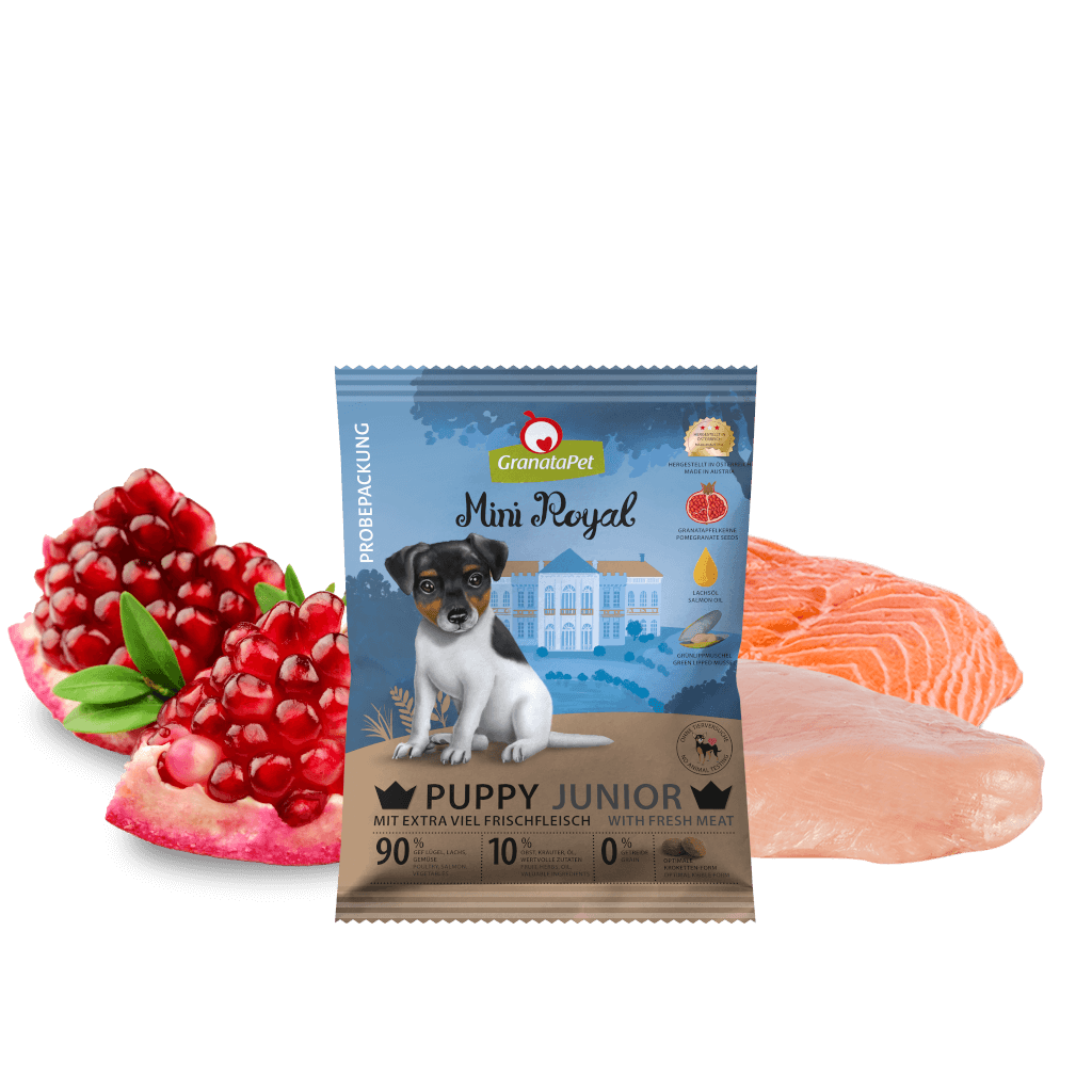 Speziell für die kleineren Vertreter unserer geliebten Fellnasen haben wir das GranataPet Mini Royal Trockenfutter Junior entwickelt. Es bietet Deinem Liebling nicht nur eine artgerechte, schmackhafte Ernährung bis zur Vollendung des ersten Lebensjahres, sondern ist dank der extra kleinen Kroketten für jeden kleinen Vierbeiner besonders gut zu kauen. Viel frisches Fleisch sowie Mineralstoffe und Vitamine versorgen Deinen Liebling zusammen mit gesunden Allgäuer Bergwiesenkräutern mit allen notwendigen Nährstoffen und gewährleisten eine bedarfsdeckende Ernährung, die garantiert getreide- und zuckerfrei ist.