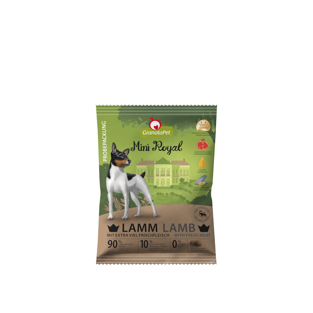 Speziell für die kleineren Vertreter unserer geliebten Fellnasen haben wir das GranataPet Mini Royal Trockenfutter Lamm entwickelt. Es bietet Deinem Liebling nicht nur eine artgerechte, schmackhafte Ernährung, sondern ist dank der extra kleinen Kroketten für jeden kleinen Vierbeiner besonders gut zu kauen. Viel frisches Fleisch sowie Mineralstoffe und Vitamine versorgen Deinen Liebling zusammen mit gesunden Allgäuer Bergwiesenkräutern mit allen notwendigen Nährstoffen und gewährleisten eine bedarfsdeckende Ernährung, die garantiert getreide- und zuckerfrei ist.