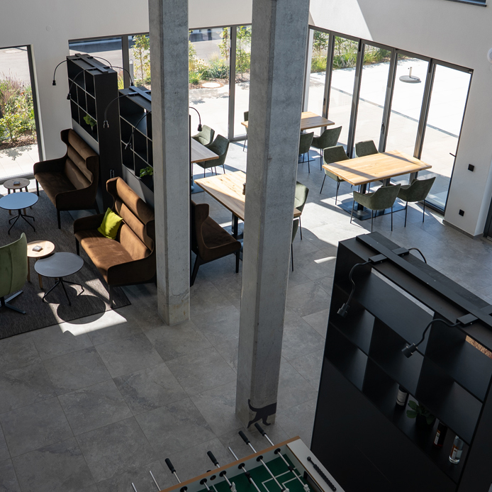 Unser Campus ist nicht nur ein Ort zum Arbeiten, sondern auch ein Statement für Nachhaltigkeit. Das Gebäude wurde als Niedrigstenergiehaus konzipiert, erzeugt erneuerbare Energien und nutzt diese intelligent für den eigenen Bedarf. Alles, was darüber hinausgeht, wird in den Energiemarkt eingespeist, was ein Plus für Umwelt und Zukunft ist.