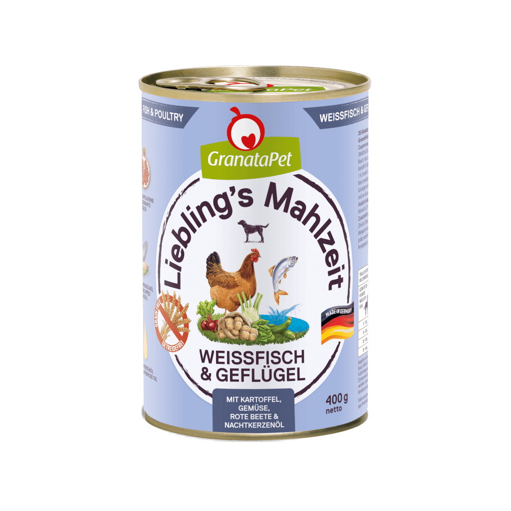 GranataPet Liebling’s Mahlzeit ist aufgrund seiner fleischigen, feinen Komposition die ideale, ausbalancierte Vollwertnahrung – nur einmalig schonend dampfgegart. Durch die gezielte Zugabe von Kartoffeln, Mangold, Zucchini, Fenchel, Rote Beete und Nachtkerzenöl wird dieses Hundefutter bewusst verfeinert und schafft es, ausschließlich mit gesunden und leckeren Zutaten jedes Hundeherz zu erobern.